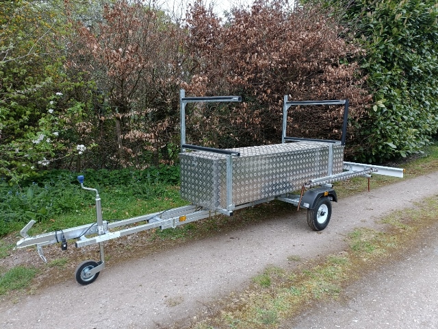 TST Adjustable Canoe Kayak Trailer twin can carry any size boat upto 21 feet long.Talk to us about your boats and we will supply a trailer to suit.Various Rack options: V bars, Dinghy, Topper Racks.Trailer can be split into 3 parts for easy storage.Axle and rack position are adjustable.Adjustable trailer length.Paddle Box can be added.