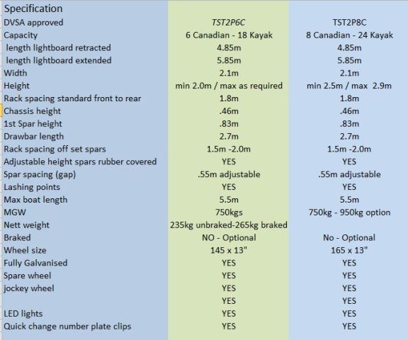 TST 2 Post Canoe Kayak Trailer has centre post racks that allow for boats to be easily loaded from each side.8 canadian canoes or upto 24 kayaks can be carried on this trailer.As with all of our trailers, individual needs and specifications can be taken into account.